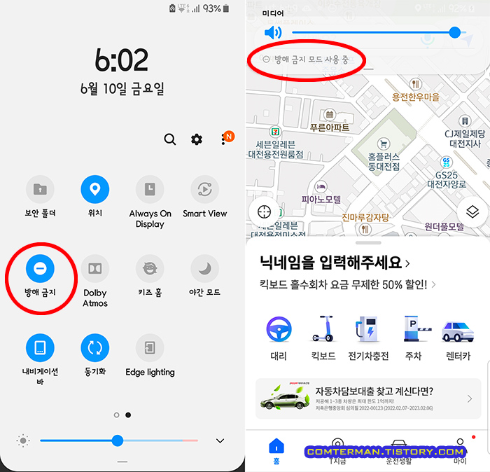 방해금지 설정과 관계없이 뜨는 티맵 전화알림