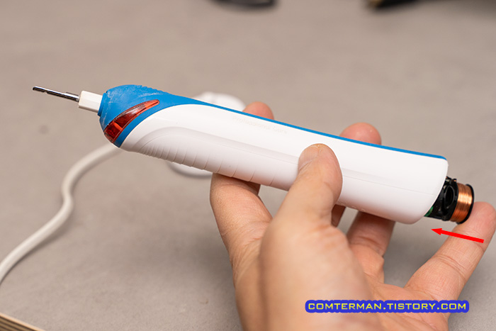 아래쪽 커버 분리는 오랄비 전동칫솔의 충전기를 끼우고 젖히는 방법으로 가능하다고 하는데, 이 역시 힘으로만 젖히다가 충전기, 혹은 커버 내부의 걸쇠가 파손될 수 있으니 적당한 열을 가해 데워준 상태에서 분리를 시도하는 게 좋습니다.